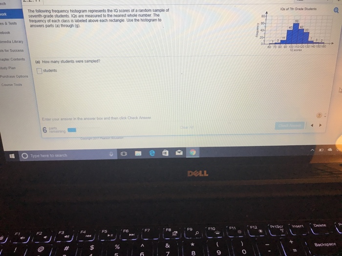 The frequency of each class is labeled above each rectangle. FIGURE CANT COPY a How many students were sampled. The following frequency histogram represents the IQ scores of a random sample of seventh-grade students.